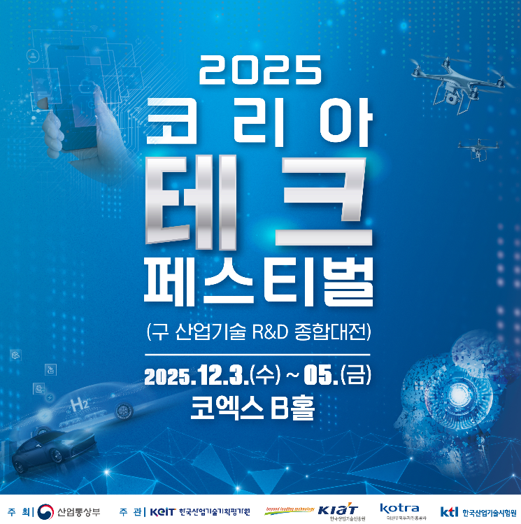 행사내용 : 올해에는 산업기술 R&D 전주기 지원성과를 공유하기 위해 "산업기술 R&D 종합대전"과 "대한민국 기술사업화 대전"이 만나 2025 코리아 테크 페스티벌로 재탄생했습니다. |